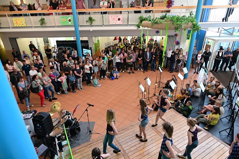 14.05.2022. Die Friedrich-Reimann Grundschule in Zeulenroda-Triebes verwandelte sich am Samstag in ein vielseitiges Messeareal. Erstmals fand dort die Messe "Ausbildung & Beruf" statt. 54 Aussteller präsentierten sich den Besuchern unter dem Motto "Zukunft in der Heimat". Es gab viel zu entdecken und zu erfahren. Auch die Thüringer Polizei war vor Ort und wurde gebeten, eine kleine Festname vorzuführen. Doch nicht nur die Szenennachstellung wurde begeistert aufgenommen, sondern auch die reichlichen Informationen zu spannenden Jobs aus der Arbeitswelt. Hier gibt es ein paar Impressionen der Messe: |