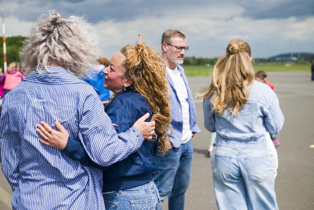 auf der Landebahn und durften ein Flugzeug erkunden. Als Höhepunkt